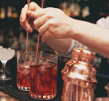 From 10:00pm until 12:00am you'll enjoy a delightful open bar with beers, wines, cocktails and a selection of unique Doux Prohibition Cocktails.