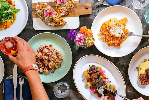 Devour plates of Burrata with farm tomatoes, toasted almonds, celery & red onion vinaigrette, followed by mains like Creekstone Farm Hanger Steak (Pat La Frieda, black angus 100% grass-fed beef steak, rosemary fingerling potatoes, caramelized onions), not to mention homemade Gnocchi ai Funghi adorned with truffle oil.