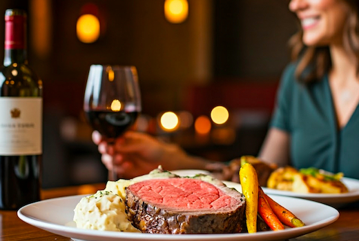 Think thick-cut, juice-dripping prime rib, pillowy mashed potatoes, refreshing caesar salads, and sips to savor between bites. Each slab of prime rib is carved to order - rich, tender, and glistening with flavor - meant to be enjoyed slowly, generously, and with plenty of toast-worthy moments in between. It's a spread made for second (or third) helpings.