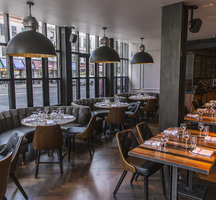 Executive Chef Eric Lapkin (Lutèce, Rubicon) highlights traditional bistro classics with quality ingredients and precise technique. Try the succulent Grilled Steak & Eggs made with organic eggs and local cheddar, or the house-favorite Chicken & Waffles drizzled with jalapeño aleppo maple syrup.