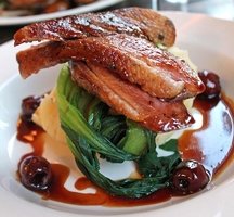 The Valentine's dinner menu here features many of the restaurant's most popular dishes, from the Lobster Bisque Soup to the Roast Duck Breast (in wine, with poached pears, cranberry Champagne sauce).