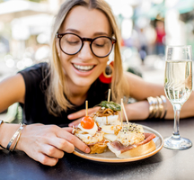 Let a bottle of effervescent Champagne take you on a trip, with the Gambas Al Ajillo (shrimp, garlic, guindilla peppers in olive oil) and Croquetas Cremosas (creamy croquettes of chorizo and Serrano ham) kicking off your epic feast.