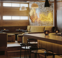 Applauded by The New York Times, GG Tokyo mirrors the beautiful, contemporary culture of the Golden Gai district in Tokyo. Admire subtle neon accents amidst natural wood tones, elevated by curated custom art installations and murals displayed prominently throughout.