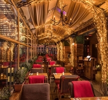 Meanwhile, the gorgeous indoor/outdoor space is outfitted with custom banquettes and space heaters so you can drink, dance, and merry-make your night away.
