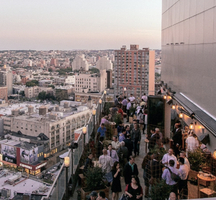 Perched 25 stories high, Kimoto Rooftop floats above the city like a rainbow in the clouds, making it one of NYC’s most coveted hotspots. With its sprawling wraparound terrace serving up sweeping views of Brooklyn & beyond, it attracts a buzzing crowd of chic denizens who come to green and gleam in this glamorous oasis.