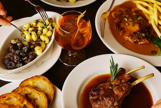 As the evening deepens, craft cocktails lead the way, followed by plates that enlighten the palate and stir the soul. Begin with Soupe de Poisson, a Provençal classic enriched with croutons and saffron aioli, or Steak Tartare, before indulging in the Carre d’Agneau with twice-baked potato, or the legendary Magret de Canard, aka grilled duck breast kissed with pink peppercorn sauce, broccolini, and potato gratin.