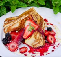Think perfectly balanced Mimosas alongside a Grilled Mortadella and Ricotta Sandwich with fresh baby kale, demi-glace, and perfect home potatoes. Or opt for something sweet and soft like Pancakes and Berries doused in Maple Syrup. Of course, you can't pass up the open face Bagel featuring housemade Lox, goat cheese, capers, and pickled onions, yum!