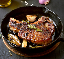 $5 upcharge for pork chop & $7 upcharge for steak.