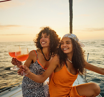 Forget your troubles, sip a few cocktails, and let the relentless pace of the city drift away as you slip into a realm of serenity on Manhattan By Sail's Afternoon Golden Hour Cocktail Sail. Let the soothing breeze kiss your skin, the vibrant hues of the sunset paint the sky, and the exquisite drinks transport you to a luxurious world of calm as you glide over the water on this spectacular voyage.