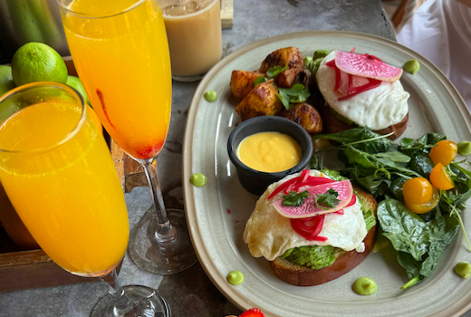While you soak in the charms, let potent Negronis and bubbly Mimosas flow as you slice into Hamachi Eggs Royal with brown butter hollandaise, or delight in the sweet sensations of French Toast with mixed berries and whipped mascarpone. Lest we forget, the Red Pepper Shakshuka shines with its deep flavors.
