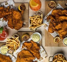 Indulge in golden Schnitzel & Frites with lemon aioli or thick-cut French Toast topped with berries and whipped cream—sunny, satisfying, and made to share. Drinks wise, keep it classic with a Mimosa or even add a fruity flavor, or try the East Side—a refreshing mix of Vodka, Mint, Cucumber, and Lime.