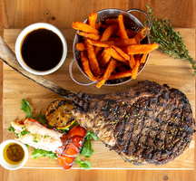 Excludes full dozen Oysters; $10 upcharge for Beef Tartare; $25 upcharge for Caviar Beignets; $10 upcharge for Duck Breast; $75 upcharge for Tomahawk.