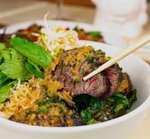 Get lost in the wonderful flavors of the Spicy Curry Duck Confit elevated by fresh rice noodles, fresh orange, and Malay curry sauce, as well as the Chicken Katsu - a beloved dish adjacent cabbage slaw, tonkatsu sauce, and creamy Japanese mustard.