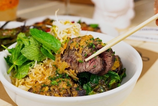 Next up, you'll continue to sip on fabulous sake, warming you up for mains. We love the Chili Smoked Skirt Steak (coconut rice, charred scallion relish, Chinese broccoli) and the Miso Glazed Salmon (black rice, Chinese broccoli, saikyo miso glaze).