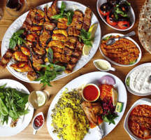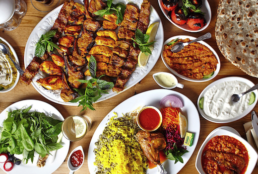 Follow that with some Gheymeh Nesar, aka lamb with sour orange peel, barberries, saffron, tomato paste, and seasoned with spices, served with rice and adorned with Persian pistachios, almonds, and onions. Lest we forget, desserts like Persian Baklava add a sweet finish via almond-filled flakey pastry, honey syrup, pistachio, and rose.