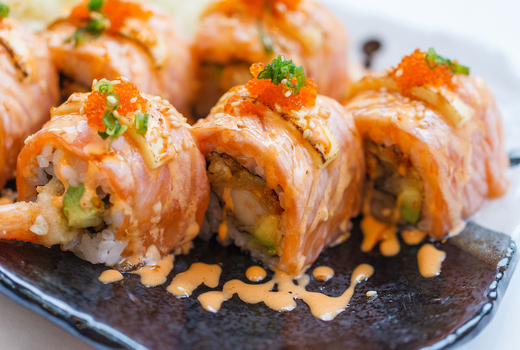 Tuck into the Burrata Avocado Special Roll laden with burrata, avocado, salmon, black tobiko, cucumber, crispy gobo, and pesto sauce, not to mention the Spicy Hamachi Bowl loaded with jalapeño, yellowtail, yuzu citrus sauce, house-made pickled daikon radish, shiso, tobiko, scallion, renkon chips (lotus root), and sushi rice.