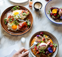 From the Fried Chicken served with spicy maple & Korean muchim pickles, and the Belgian Waffle heady with strawberries, chocolate chips, bacon, candied pecans & bananas, to the Broccoli Tacos (deep-fried broccoli, feta, shallots, hummus) that have made headlines the world over, Chef Kord's dishes are designed to marvel and satisfy in equal measure.