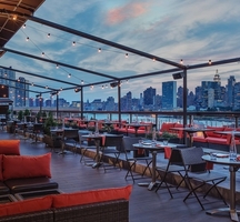 With a clubby decor, a lounge-y attitude, and a spectacular retractable climate-controlled rooftop, Penthouse 808 brings Manhattan chic to Long Island City. The elevator opens directly onto the spacious outdoor-indoor deck furnished with dark wood benches, burnished copper planters, and a chic LA vibe.