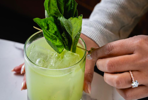 Crank up the heat with an Earl Grey Smash (Earl Grey infused rye whiskey, pisco, passion fruit, mint) as you revel in a plate of Bone Marrow & Wagyu Bruschetta, aka incredible, coveted A5 wagyu served on a hot stone, paired with bone marrow, pickled beech mushrooms, and a shot of whiskey on the side. It’s a true flavor explosion!