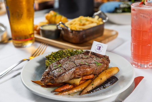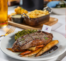 As you bask in the glow of this convivial hub, slice into the Pork Chop Milanese (panko crusted, braised red cabbage, mustard veloute), or divine over the Fish & Chips (beer battered with traditional accompaniments). It all wraps up with some Molten Chocolate Cake adjacent velvety vanilla ice cream.