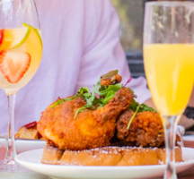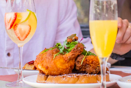 The drinks will start flowing, made using freshly-squeezed juices and top-notch booze, like the bubbly Mimosas or the sensational Bloody Marys. You'll find your happy place as you drink and dine, going for the signature Fried Chicken Biscuits & Gravy (buttermilk biscuit, sunny eggs, fried chicken thigh, pork) or the Eggs Norwegian with spinach, smoked salmon, hollandaise, & home fries.