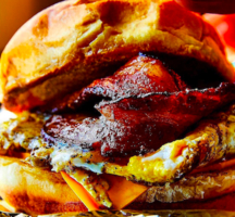 Cuddle up amidst warm woods and Nantucket tavern-esque vibes as you devour a homemade Bacon, Egg & Cheese Sandwich with hash brown patties, not to mention the signature Hoecakes, repping "say when" maple syrup, meaning you can slather your stack with as much syrup as your heart desires.