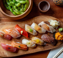 Saddle up to the bar for an intimate visual showcase of exceptional skills by Shinsen's talented sushi chefs, or gather a group around the elegant, natural wood tables and booths before clinking glasses of clear, invigorating sake.