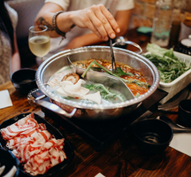 Imagine combinations of Lamb Chops, Sliced Angus Beef, Duck, Prawn, Fried Tofu, Enoki Mushrooms, and Rice Noodles, cooked at your own accord in bubbling broths, with favorites being the Herbal, Original, Spicy, and Vegetarian - the options are endless.