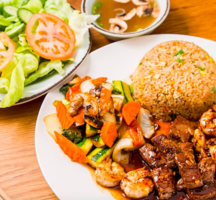 You'll sink your teeth into a succulent assortment of fare, namely juicy, tender steak as well as freshly caught shrimp, tossed and flipped to perfection, and sided by the aforementioned delights. Not to mention the spot's signature Stir Fry Rice Noodles with a homemade spicy sauce, tomatoes and vegetables.