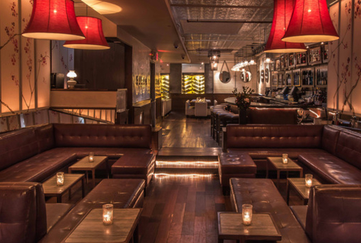 The unabashedly luxurious decor, with a 30 foot, glowing wine wall of 2,000+ bottles, lizard skin banquettes, and cherry blossom silk screens, allude to the classy voluptuousness of the 1940s - with a modern downtown edge.