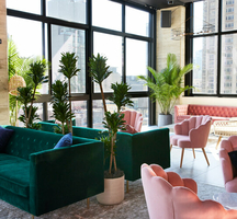 Daintree's fabulous interiors offer the perfect backdrop for enjoying imaginative cocktails, globally inspired bites, and unparalleled city views from the oversized windows. Plush, pink velvet seating and lush greenery invites you to escape into the night surrounded by New York's most fashionable denizens.