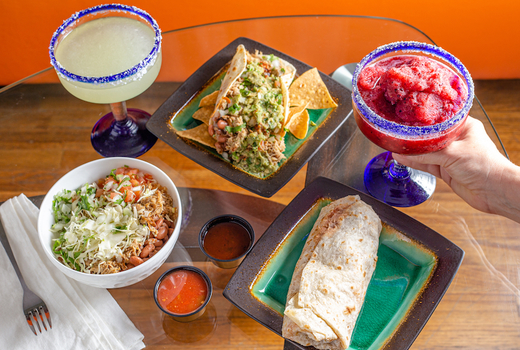 Think Chimichangas wrapped in a fried large flour tortilla filled with pico de gallo, sour cream, guacamole and your choice of chicken or steak. The Shrimp Tacos Super are also hearty, served with cilantro, onions, lettuce, cheese, sour cream and velvety guacamole.