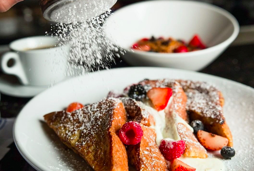 The Eggs Benedict (Taylor's ham, avocado, hollandaise sauce, English muffin), Huevos Rancheros (tostada, salsa verde, chorizo, avocado, queso fresco), and Vanilla French Toast (caramelized pear, macaroon, slivered almonds) are all superstars on the menu for you to devour.