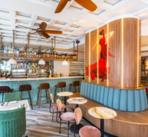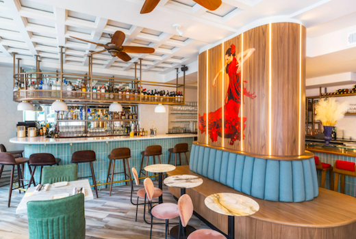 Seat yourself amidst the familial energy indoors, taking in the modern interiors that rep hues of turquoise, crimson, and gold, illuminated by contemporary lighting and massive windows. The outdoor setup is equally covetable, covered & heated in the colder months so you can sit street-side minus the chill.