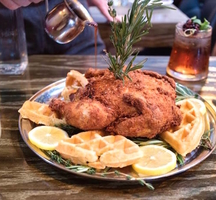 "The decor had a great manhattan cocktail bar vibe, great place for a date (you can hear yourself talk but good music), good cocktails and the food was UNBELIEVABLE! I can't recommend the steak and eggs enough or the chicken and waffles (really great presentation!)."