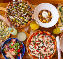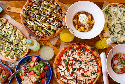Pop open a bottle of bold Montepulciano and sink your teeth into a Tartufo Pizza with organic tomato sauce, fresh mozzarella, sausage, cremini mushrooms, and white truffle oil. The pasta is also a dream, namely Nonna's Linguini & Meatballs made using fresh egg spaghetti, tomato sauce, and homemade meatballs.