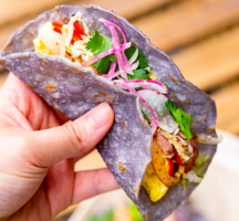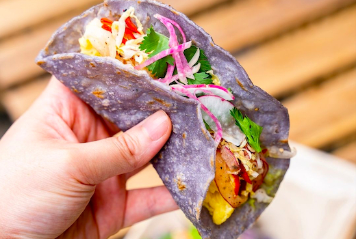 Divine over the freshly-squeezed OJ & top notch bubbles in your mimosas while you drool over plates of Scrambled Egg Tacos loaded with fluffy eggs, red onions, Napa cabbage, and ginger-scallion chili sauce in blue corn tortillas, not to mention the Crispy Scallion Potato Pancake crowned in carrots, onions, sesame, and sambal aioli with a sunny-side up egg.