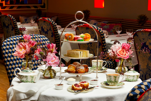 Rich textiles, bespoke artworks, and fantastical furnishings collide. The design is layered, sensorial, and Instagram-worthy, perfect for diving into the hotel’s Champagne Afternoon Tea experience in the enchantingly appointed tea room. Swathed in color and curated detail, the space is a feast for the eyes.
