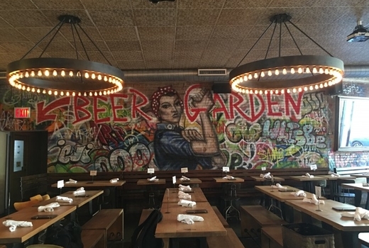 Exposed brick, reclaimed wood communal tables, hidden gardens, and oversized chandeliers casting flickering lights make West End Hall a picture-perfect setting for a high-jinks Halloweekend.