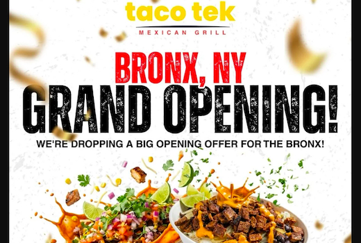 Bronx, get ready—Taco Tek is officially opening its doors on April 24th with a grand opening you won’t want to miss. Swing by from 10:00am to 4:00am at 952 Southern Blvd for a full day (and night) of bold Mexican flavors, featuring fresh ingredients, 100% halal meats, and fully customizable bowls, tacos, and burritos built your way. Want in on the opening excitement? Enter their giveaway by following @tacotekus, tagging two friends, and commenting “BOWL” on their post for a chance to win. Come hungry—because the Bronx is about to eat very, very well.
